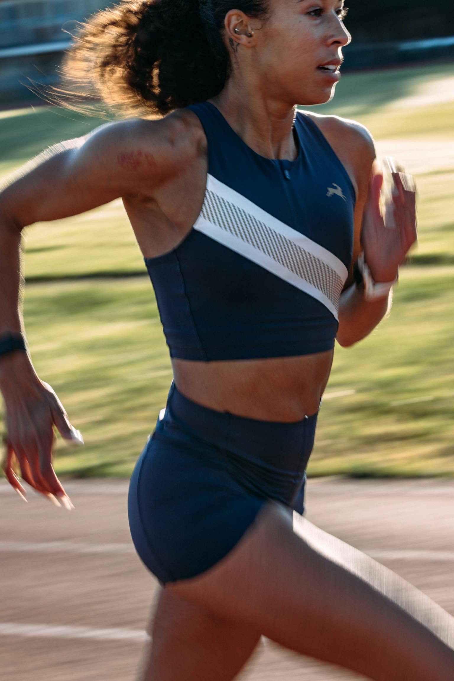 The silhouette is purposefully simple and speed-ready, designed to allow for full range of motion while providing ample coverage and comfortable compression. The back is finished with laser-perforated detailing to promote breathability as you push for the finish line.