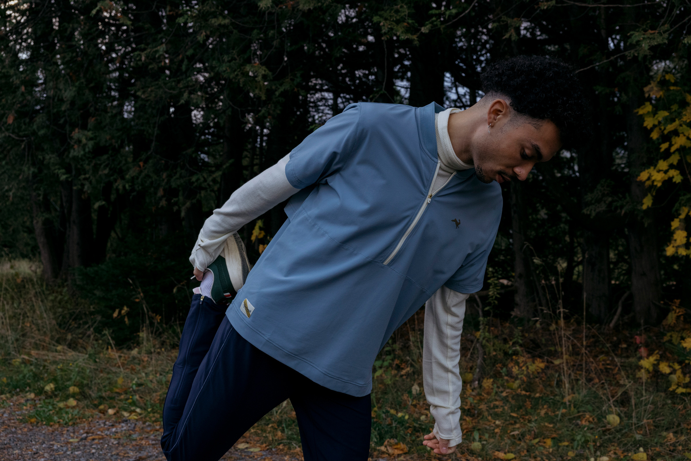 The saying goes, there’s no such thing as bad weather, only bad gear. Of course, when conditions are iffy, the line between good and bad gear can be a fine one. We designed the Harbor Shell for those days when Mother Nature might throw a curveball. In traditional Tracksmith fashion, we initially experimented beyond classic running silhouettes to create a technical shell years ago. Now, we’ve reissued it, bringing back the simplicity that warrants a permanent just-in-case place in your duffel. Made from a two-way stretch nylon blend that offers protection from the elements, it’s a lightweight, breathable barrier that you’ll never regret having on hand.