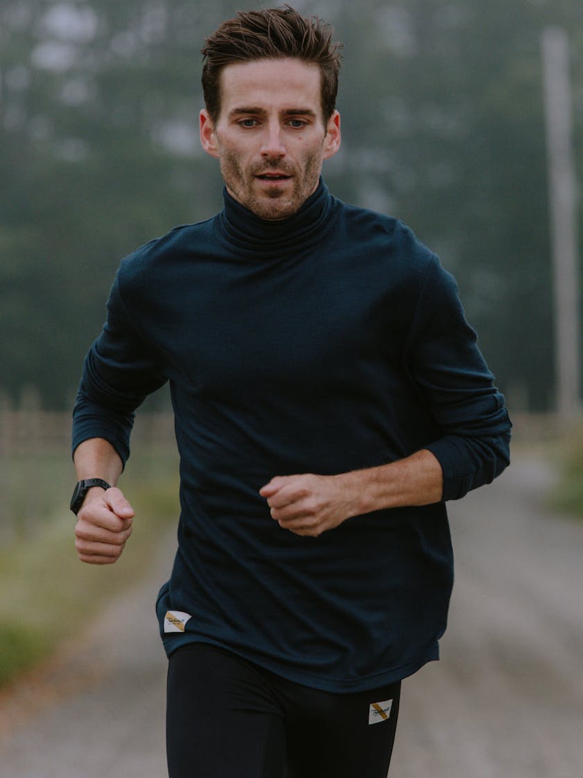 A temperature-regulating and odor-resisting Merino mid-layer with a half zip.