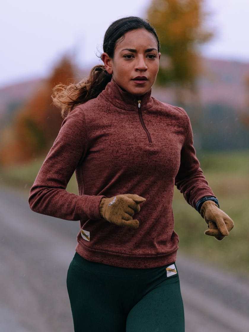 A warm, yet breathable top seamlessly crafted in an odor-resistant Merino mesh.